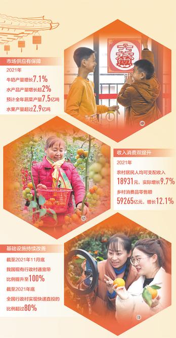 “米袋子”“菜籃子”供應充足,能滿足城鄉(xiāng)居民消費需求