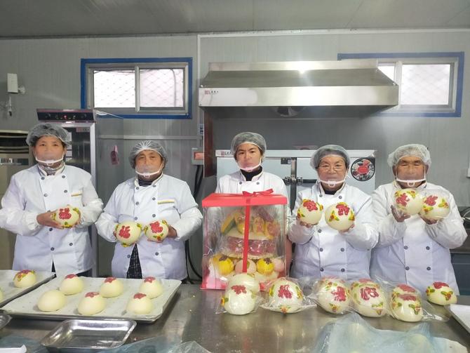 “取經”歸來后,徐士雁將村內閑置的辦公室改造成生產車間,采購了花饃制作設備,聘用村里7名愛好面食制作的婦女,一起研究適合周邊群眾消費習慣的花饃制作方法。就這樣,一群平均年齡超過60歲的農村婦女開啟了再就業(yè)之路。經過反復練習,她們的技藝越來越醇熟,揉捏搓拉剪之間,一個個魚、桃、蘋果、福袋等樣式各異的花饃躍然案板之上。