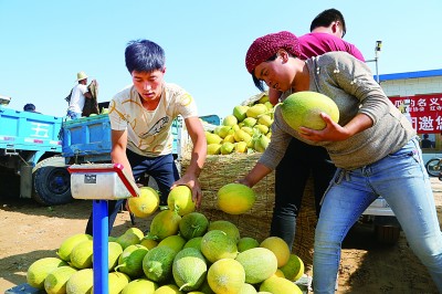 在紅寺堡大河鄉(xiāng)龍泉村,黃河水澆灌的硒甜瓜賽蜜甜。紅寺堡區(qū)委宣傳部供圖