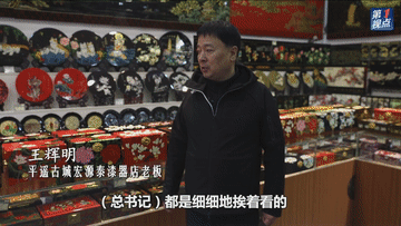 古城南大街年味濃郁。習(xí)近平沿街巷察看古城風(fēng)貌,走進平遙牛肉店、推光漆器店、東湖老醋坊,了解當?shù)匚幕z產(chǎn)保護利用和開展特色經(jīng)營情況。