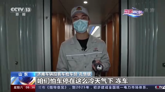 濟(jì)南車輛段客車檢車員 孔慧斌:第二天旅客上車怕冷,需要先把溫度調(diào)上來,讓旅客能夠有更優(yōu)質(zhì),更舒適的乘車環(huán)境。