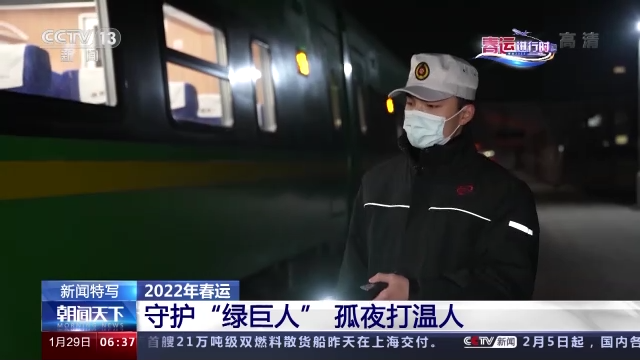 寒冷的夜色下,身披國槐綠色外衣的“綠巨人”在站里格外醒目,此時全車僅有一名客車檢車員不斷地往返于各車廂間忙碌著,他就是21歲的孔慧斌,也被稱為“孤夜打溫人”。他的職責(zé)是確保晚上列車內(nèi)溫度不低于18℃。