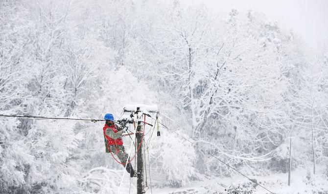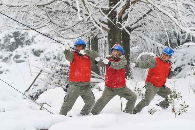 新華社武漢1月28日電 記者侯文坤 “快點(diǎn)搞!等會(huì)雪又要下大啦!”湖北省荊門市荊山余脈海拔500多米的裴山村,風(fēng)雪呼嘯,一聲呼喊響徹山間。白茫茫中,幾抹紅色格外醒目,那是正在進(jìn)行搶修的國網(wǎng)荊門供電公司栗溪供電所的電力工人。