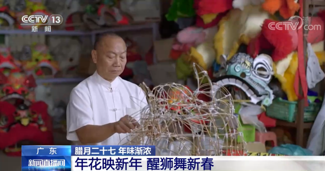 除了買年花,逢年過節(jié)嶺南必有醒獅助興。廣東醒獅更是國家級非物質(zhì)文化遺產(chǎn)之一。獅頭扎作每個步驟都是純手工打造,竹做骨,紙做皮,油墨添神采,絨毛顯神威。經(jīng)過1300多道工序1周左右的時間,一個栩栩如生的獅頭便呈現(xiàn)在我們眼前。