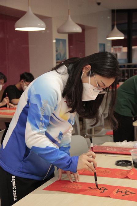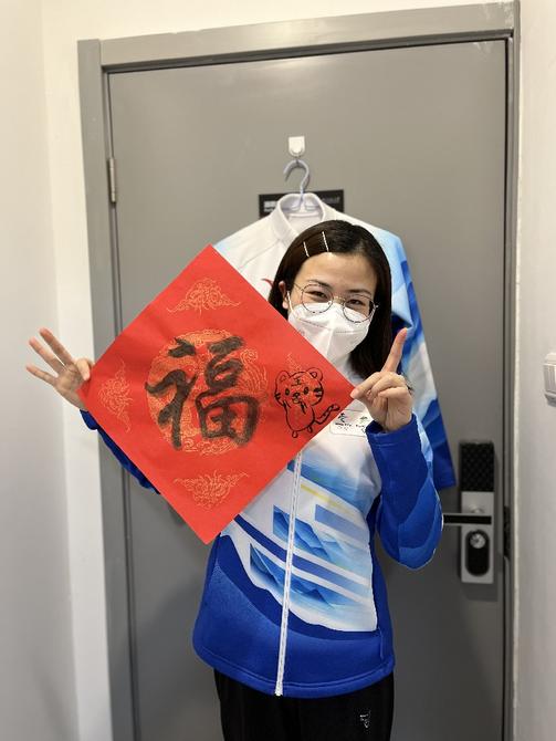 在前不久的農(nóng)歷小年晚上,場(chǎng)館還為大家舉辦了志愿者書(shū)寫(xiě)春聯(lián)的活動(dòng)。何婧旸同學(xué)說(shuō):“我從小到大每次過(guò)年都在家,所以這次特殊的冬奧新年,一定會(huì)成為我銘記終身的經(jīng)歷。往年都是看爸爸寫(xiě)春聯(lián),今年由我一筆一劃親自寫(xiě)下來(lái),心里想的都是家人們,希望大家在新一年能收獲福氣,也希望所有志愿者大伙拍平安健康?!?/p>