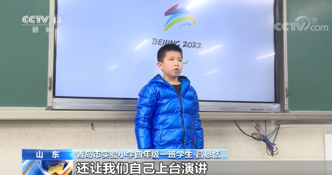 青島市實(shí)驗(yàn)小學(xué)四年級(jí)一班學(xué)生 呂恩恬:可以完成寒假作業(yè),老師也給我們看了關(guān)于冬奧的視頻,交給我們做冬奧吉祥物的手工,還讓我們自己上臺(tái)演講,在這期間我會(huì)收獲很多知識(shí)。