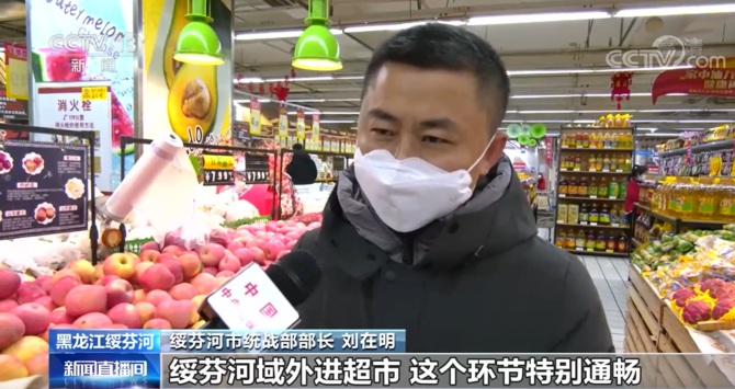 綏芬河市統(tǒng)戰(zhàn)部部長(zhǎng) 劉在明:綏芬河域外進(jìn)超市,這個(gè)環(huán)節(jié)特別通暢,從超市到百姓家,我們又想了很多辦法,應(yīng)該現(xiàn)在整個(gè)供應(yīng)是還是比較充足的。