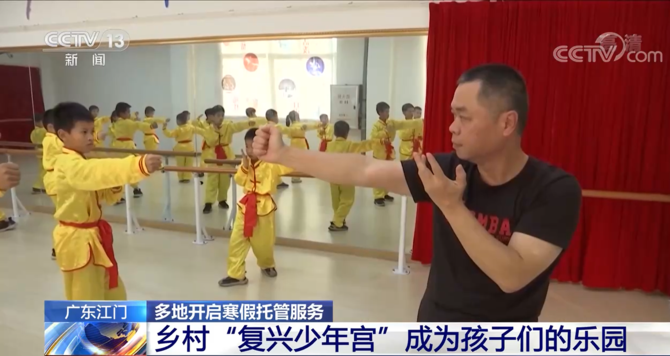 在廣東江門鶴山市,依托新時(shí)代文明實(shí)踐陣地及鄉(xiāng)村學(xué)校少年宮設(shè)立了11個(gè)鄉(xiāng)村“復(fù)興少年宮”試點(diǎn),寒假里,邀請(qǐng)專業(yè)老師前來開授公益課。在古勞鎮(zhèn)鄉(xiāng)村少年宮,學(xué)生正在老師手把手的教導(dǎo)下學(xué)習(xí)詠春拳。