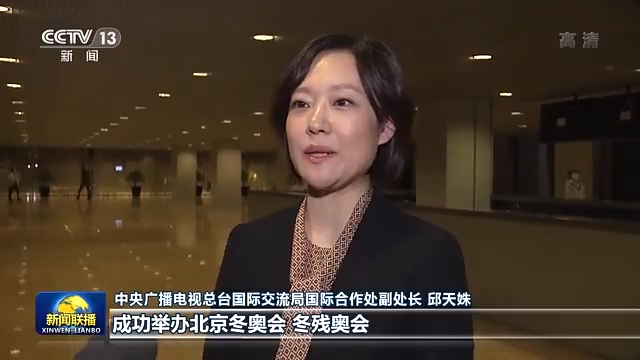 中央廣播電視總臺(tái)國際交流局國際合作處副處長 邱天姝:總書記指出,成功舉辦北京冬奧會(huì)、冬殘奧會(huì),有利于展示我們國家和民族致力于推動(dòng)構(gòu)建人類命運(yùn)共同體,陽光、富強(qiáng)、開放的良好形象,增進(jìn)各國人民對(duì)中國的了解和認(rèn)識(shí)。我們一定要以北京冬奧會(huì)為契機(jī),助力加強(qiáng)中外體育交流,為推動(dòng)?xùn)|西文明交融,展示中國良好形象作出自己應(yīng)有的貢獻(xiàn)。