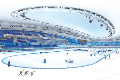 1月28日,國家速滑館“冰絲帶”正式對(duì)媒體開放。新華社記者 丁 旭攝