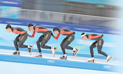 1月29日,中國速度滑冰隊(duì)運(yùn)動(dòng)員在訓(xùn)練中。新華社記者 丁 旭攝