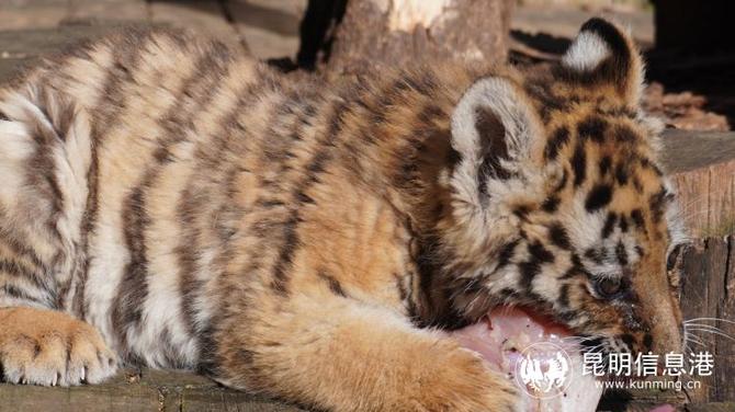 虎年春節(jié),動物園的老虎可是主角。在獅虎山莊,雙胞胎東北小虎姐妹正準備享用他們的雞腿年夜飯。飼養(yǎng)員介紹,小老虎吃完一只雞腿差不多要半小時。只見它們的爪子按住雞腿,“虎頭虎腦”用力啃咬,呆萌的樣子吸引來不少游客拍照留影。
