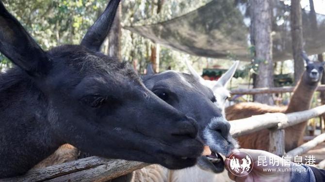 “哞哞哞……”來到非洲部落,大額??吹焦ぷ魅藛T,便熱情叫起來。大額牛是云南特有的野生種、屬于珍稀野牛。園區(qū)為它們專門用白菜包了青草餡的餃子。只見他們伸出長長的舌頭迎接著飼養(yǎng)員送到嘴邊的“青草餃子”,三下五除二就吃完了。而在另一側,羊駝家族們正在享用胡蘿卜大餐,可愛的羊駝十分溫和親人,一根根胡蘿卜不一會兒就被吃完了。