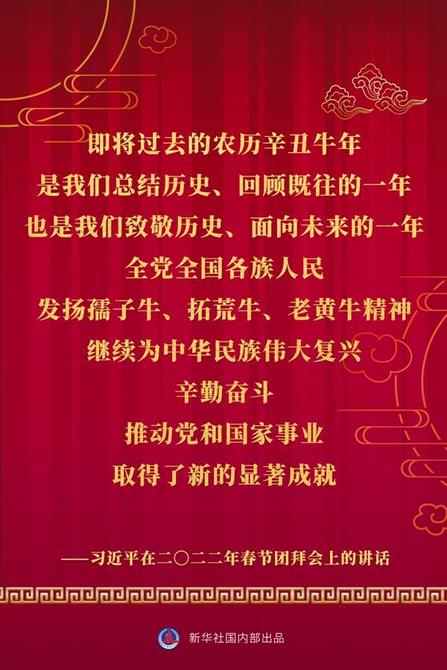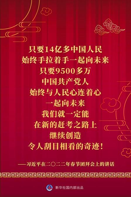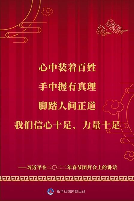 中共中央、國務院30日上午在人民大會堂舉行2022年春節(jié)團拜會。中共中央總書記、國家主席、中央軍委主席習近平發(fā)表講話。一起看金句。