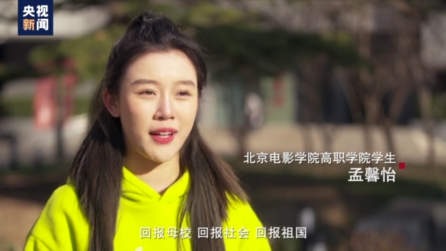 北京電影學(xué)院高職學(xué)院學(xué)生 孟馨怡:運(yùn)用自己所學(xué)的知識可以去回報(bào)母校、回報(bào)社會、回報(bào)祖國。