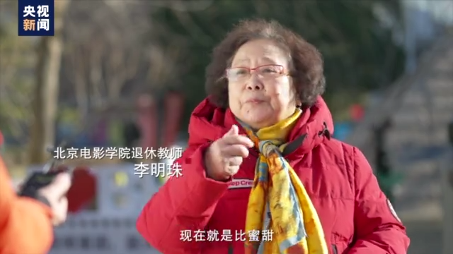 北京電影學(xué)院退休教師 李明珠:那時(shí)候有一個(gè)歌《我們的生活比蜜甜》,現(xiàn)在就是比蜜甜,所以驕傲,我驕傲我自豪。