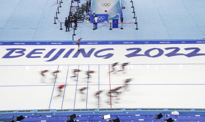 1月28日,速度滑冰運(yùn)動(dòng)員在國(guó)家速滑館“冰絲帶”訓(xùn)練。新華社記者王菲攝