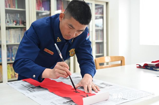 “是哪一個(gè)瞬間讓你覺得快過年了呢?”今天讓我們一起看看昆明市森林消防支隊(duì)五華中隊(duì)里涌動(dòng)著的新春氣息,過年“氛圍組”已然上線,剪窗花、張貼對(duì)聯(lián)、掛大紅燈籠,消防救援指戰(zhàn)員們給營(yíng)區(qū)換上了“新裝”,呈現(xiàn)一片辭舊歲迎新春,歡天喜地過大年的濃濃“年味”。