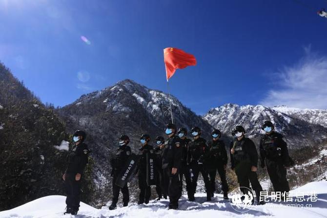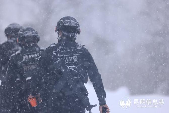大雪下了一夜,現(xiàn)在依然不停,一腳踩上去,整條小腿都陷在雪中,由扛著國旗的隊(duì)員帶隊(duì),后面的人踩著前面的人的腳印,大家搖搖晃晃往前走,已經(jīng)顧不上隊(duì)列的整齊。往前走一段,大家就停下來休息幾分鐘,看見幾個(gè)隊(duì)員沒戴護(hù)目鏡,帶隊(duì)民警老楊大聲提醒:“大家把護(hù)目鏡戴好,小心雪盲癥!我以前就著過道,老火得很!”