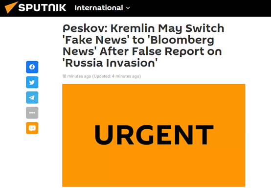 在美國彭博社為官網(wǎng)首頁發(fā)布“俄羅斯入侵烏克蘭”假新聞致歉后,克里姆林宮的回應(yīng)來了。