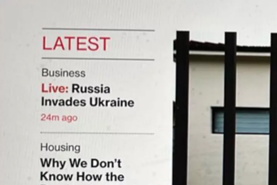 《紐約郵報》援引推特網(wǎng)友截圖,圖中,彭博社官網(wǎng)首頁發(fā)布了有關(guān)“俄羅斯入侵烏克蘭”的標(biāo)題。