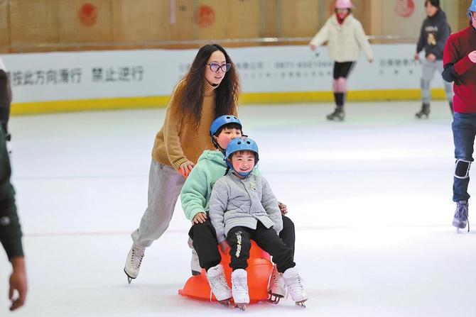 市民在昆明世紀(jì)星冰場體驗滑冰。