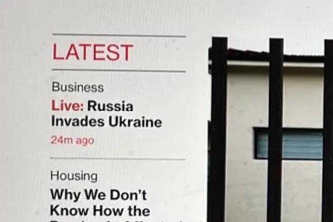 《紐約郵報》援引推特網(wǎng)友截圖,圖中,彭博社官網(wǎng)首頁發(fā)布了有關(guān)“俄羅斯入侵烏克蘭”的標(biāo)題。