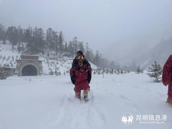 隨即,消防救援人員繼續(xù)奔赴現(xiàn)場,于11時(shí)30分抵達(dá)。“終于來了,終于來了,我太冷了”。見到消防員,這人很激動。經(jīng)了解,該被困人員為浙江人,4號晚上從香格里拉徒步往德欽至白馬雪山1號隧道附近時(shí),由于突降暴雪無法前行,該男子就近在隧道旁尋找了一處簡易庇護(hù)所駐停一晚。5號清晨醒來發(fā)現(xiàn)大雪仍未停止,周圍積雪越來越厚,由于長時(shí)間處于低溫環(huán)境,精疲力盡,且靴子已被凍住無法穿著繼續(xù)前行,無奈之下只得選擇報(bào)警。救援人員一邊背負(fù)被困人員轉(zhuǎn)移至消防車?yán)铮贿吺婢徦o張的情緒。在被困人員被成功解救,救援人員準(zhǔn)備返回時(shí),又接到報(bào)警稱:在3號隧道附近1公里處有1車5人被困雪地......消防救援人員顧不上多想,迅速收整器材趕往現(xiàn)場實(shí)施營救。