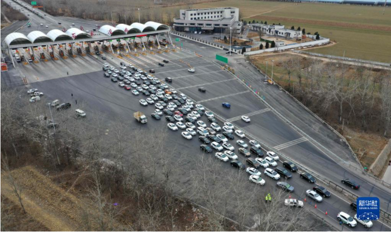 2月6日,車輛在河北省石家莊市石家莊南收費站通行(無人機照片)。新華社發(fā)(許建園 攝)