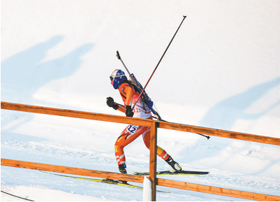 2月5日,中國選手孟繁棋在比賽中。當(dāng)日,冬季兩項(xiàng)混合接力4×6公里比賽在國家冬季兩項(xiàng)中心進(jìn)行。新華社記者 江宏景攝