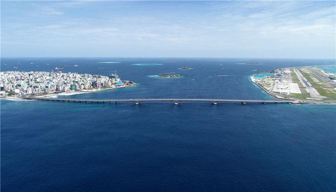 這是2019年8月30日在馬爾代夫航拍的連接首都馬累和機(jī)場(chǎng)島的中馬友誼大橋。新華社發(fā)(王明亮攝)