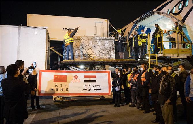 2021年2月23日,中國(guó)援助埃及的首批新冠疫苗抵達(dá)開(kāi)羅國(guó)際機(jī)場(chǎng)。新華社記者 鄔惠我 攝