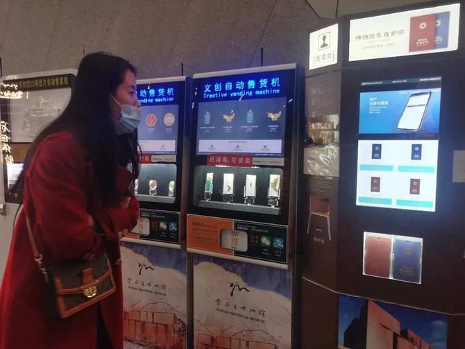 游客在云南省博物館體驗(yàn)文創(chuàng)自動(dòng)售貨機(jī) 王歡 攝
