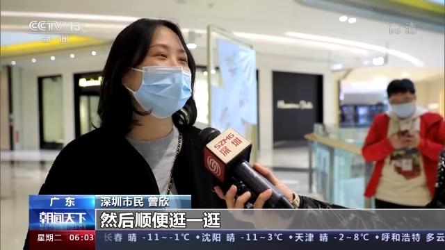 廣東深圳市民 曾欣:剛好生日跟家里人出來吃個飯,順便逛一逛。我剛才吃飯用的優(yōu)惠,直接減了幾十塊錢,覺得挺好的。
