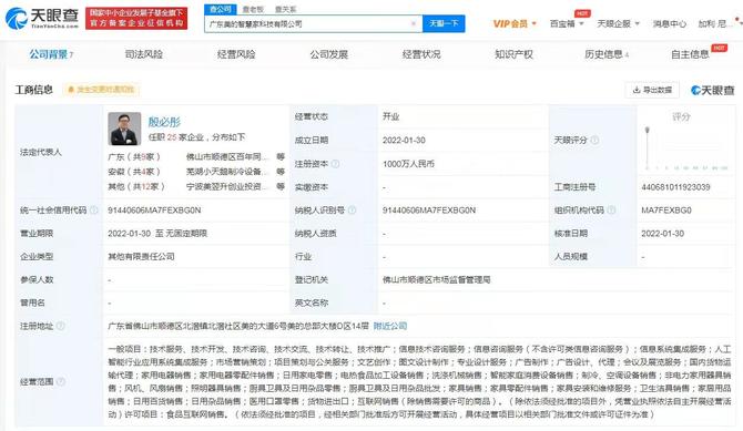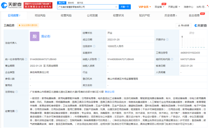 2月8日消息,天眼查App顯示,近日,廣東美的智慧家零售有限公司、廣東美的智慧家科技有限公司成立,法定代表人均為殷必彤,注冊資本分別為1億人民幣、1000萬人民幣。
