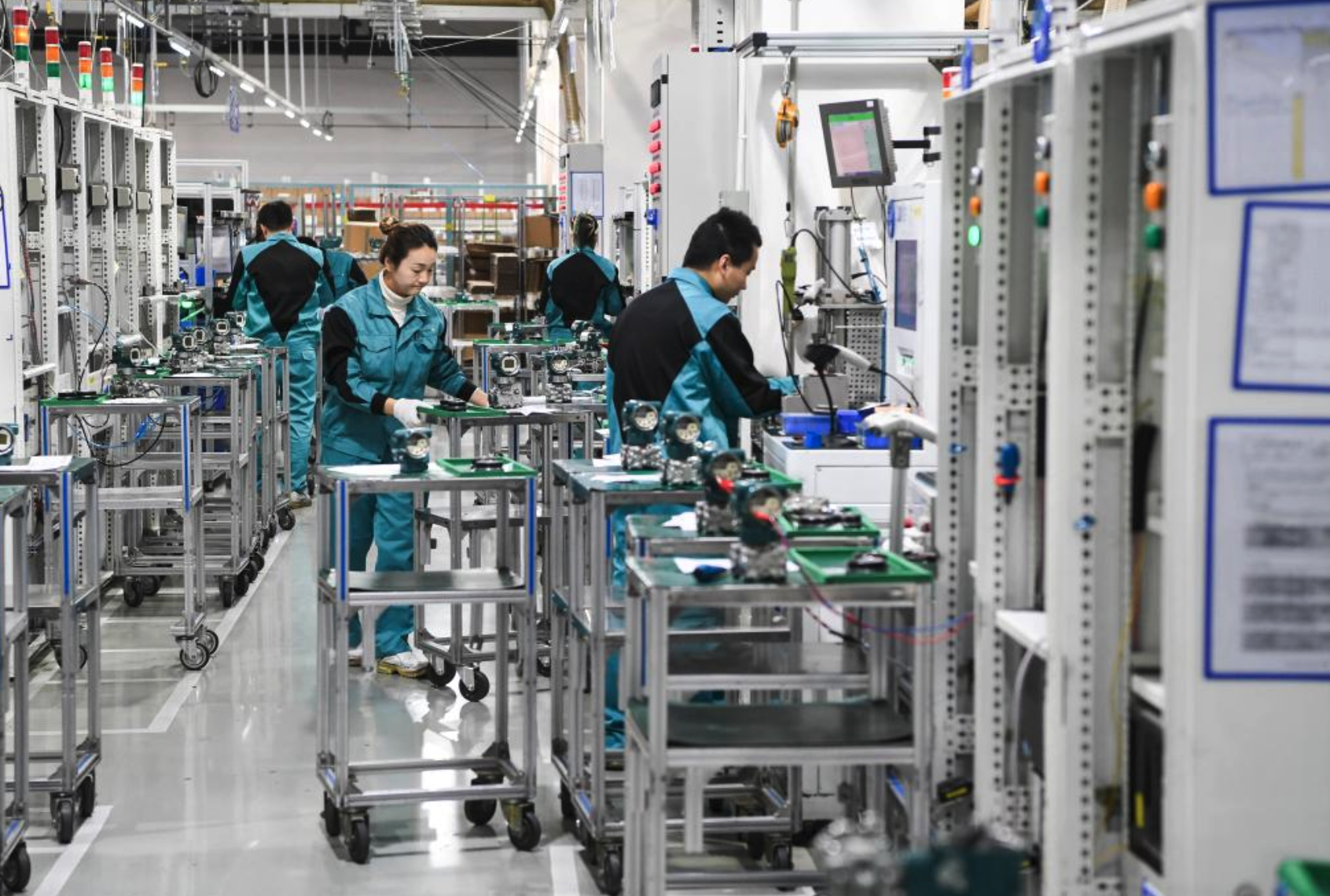 2月7日,重慶橫河川儀有限公司工作人員正在生產車間內作業(yè)。新華社記者王全超 攝