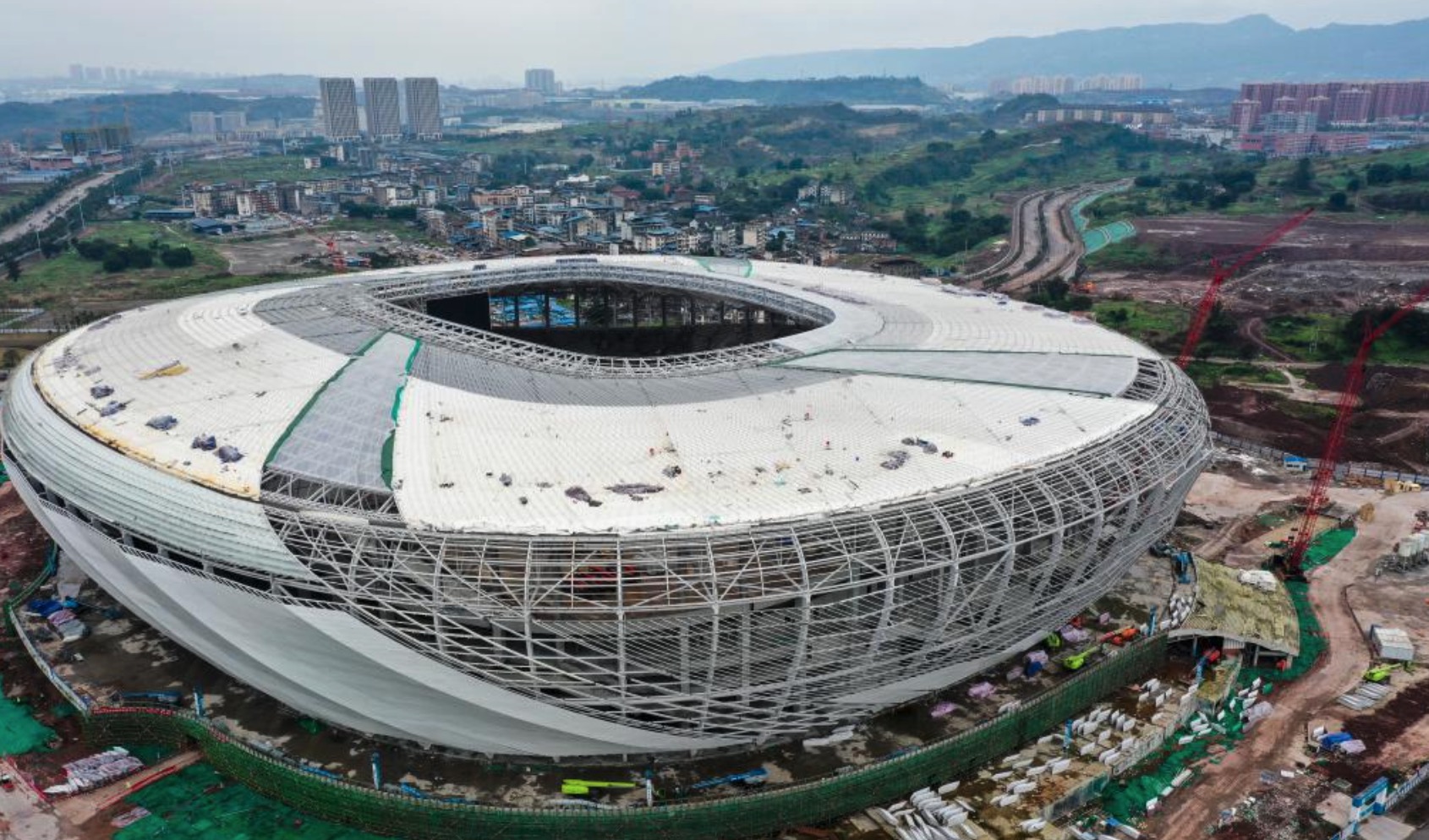 2月7日,重慶龍興足球場項目建設現(xiàn)場。新華社記者王全超 攝