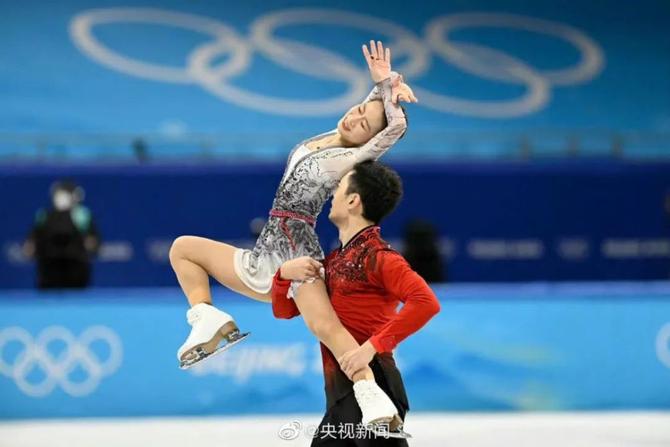 此前團(tuán)體賽的雙人自由滑項(xiàng)目中