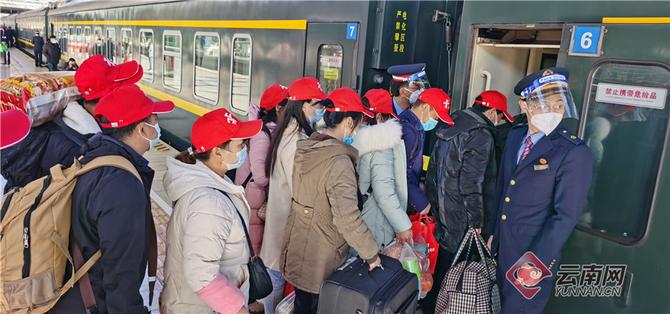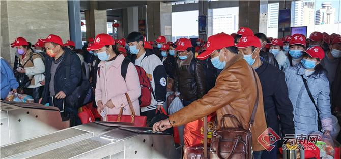2月9日,在昆明火車站,1000余名會澤縣返崗務工人員即將乘坐返崗專列分別前往江蘇、上海、廣州、北京、重慶、安徽、山東、江西等地,懷揣新夢想,踏上就業(yè)新征程。
