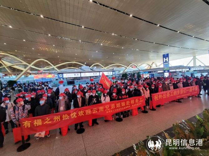 昆明信息港訊 記者上官艷君 2月9日中午12時(shí)20分,從昆明長(zhǎng)水國(guó)際機(jī)場(chǎng)出發(fā)的169名務(wù)工人員,乘坐廈門航空MF8428航班飛往福州,這也是春節(jié)后昆明機(jī)場(chǎng)首個(gè)外出務(wù)工包機(jī)航班。