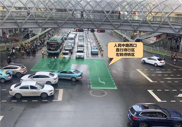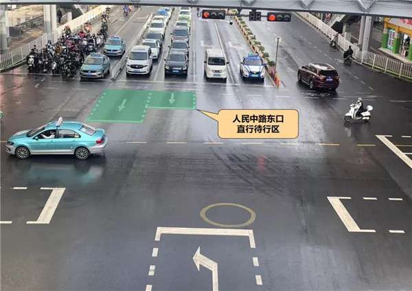 通過設(shè)置左轉(zhuǎn)待轉(zhuǎn)區(qū)、直行待行區(qū),充分挖掘交叉口可利用空間,進(jìn)一步提升通行效率,縮短排隊(duì)長(zhǎng)度,降低通行延誤,從而緩解交通擁堵問題。