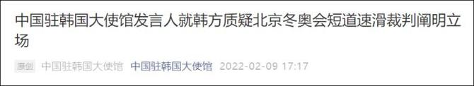關(guān)于所謂“韓服爭(zhēng)議”和“不公正判罰”,中國駐韓國大使館先后予以了回應(yīng)。回應(yīng)指出,一些韓媒所謂“文化工程”、“文化掠奪”的說法完全站不住腳,中方尊重韓國的歷史文化傳統(tǒng),希望韓方也能夠尊重包括朝鮮族在內(nèi)中國各民族人民的感情;而一些韓國媒體和政客將矛頭指向中國政府和整個(gè)北京冬奧會(huì),甚至煽動(dòng)反華情緒,毒化了兩國國民間的感情,引起中國網(wǎng)民的反擊,中方對(duì)此不得不表示嚴(yán)重關(guān)切,闡明嚴(yán)正立場(chǎng)。