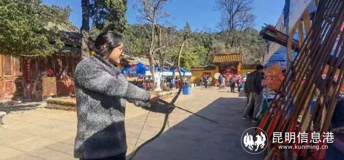 此外,現(xiàn)場展出的弓箭也吸引了民眾紛紛前來拉弓體驗(yàn)。各非遺展位前都吸引了民眾駐足欣賞和了解。今年非遺展期間還引入了傳統(tǒng)飲食及醫(yī)藥展,建新園米線、昆明燜爐烤鴨、呈貢豌豆粉、七甸醬菜、尋甸牛干巴讓游客們來了一次舌尖之旅,現(xiàn)場還可以向圣愛中醫(yī)、昆中藥、百草膏進(jìn)行相關(guān)醫(yī)藥咨詢。據(jù)了解,2月12日、13日,黑龍?zhí)哆€將每天各舉辦一場民族民間歌舞樂、傳統(tǒng)戲劇節(jié)目展演,主要展演傳統(tǒng)滇劇折子戲和花燈歌舞。
