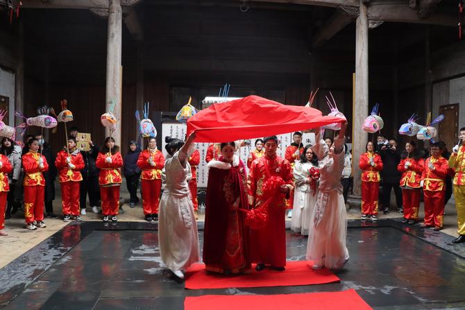 新人們在家人愛的包圍和祝福下,與大家一起分享幸福、快樂和喜悅,他們表示,這一場充滿徽州特色的婚禮讓他們有了滿滿的儀式感,將終身難忘。