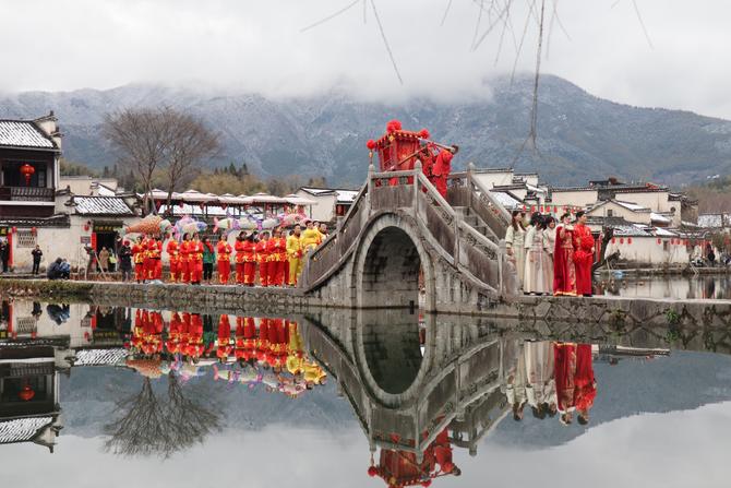 據(jù)了解,傳統(tǒng)婚禮在中國已有幾千年的文化歷史,此次徽州婚俗再次將傳統(tǒng)文化重新展現(xiàn)了出來,通過參與感受原汁原味的民俗婚禮,讓大家了解傳統(tǒng)的婚禮文化,更深的去了解民間習(xí)俗,品味徽州風(fēng)土人情。此次婚禮還邀請了宏村花燈隊和舞麒麟,將傳統(tǒng)的民俗跟婚俗緊密的融合在一起。(央廣網(wǎng) 記者張宣劍 通訊員黃潔 方龍 何彥銘)