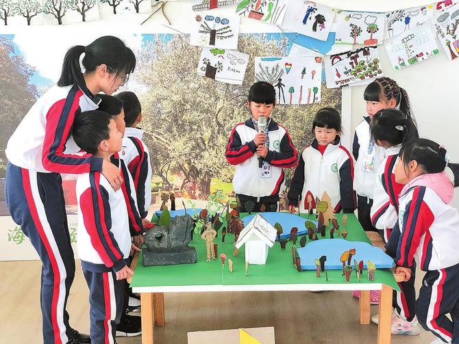 “我是小漁村的小導游張嘉誠?!薄拔沂呛?谔卮髽虻男в螠喷??!薄拔沂呛?诹謭龅男в乌w子業(yè),下面由我們給大家介紹家鄉(xiāng)海口……”在西山區(qū)第五幼兒園的活動室里,孩子們對家鄉(xiāng)??诘奈幕貥巳鐢?shù)家珍。這是老師們精心策劃的課題,將當?shù)靥厣谌胪{和游戲中,提升幼兒藝術(shù)審美情趣的同時,增強本土文化認同感。