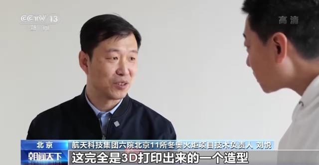 航天科技集團六院北京11所冬奧火炬項目技術負責人 劉悅:火焰最后的要求它是階梯狀的,中心要高一點。這完全是3D打印出來的一個造型,彎制是彎不出來造型和方向的。