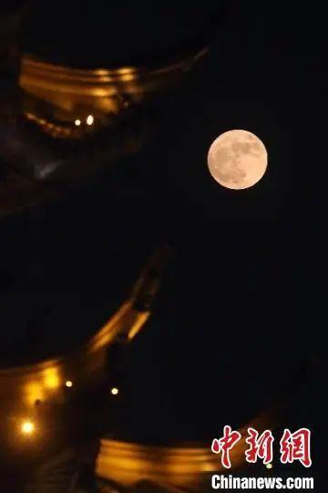 圖說(shuō):超級(jí)月亮。中新社記者 韋亮/攝
