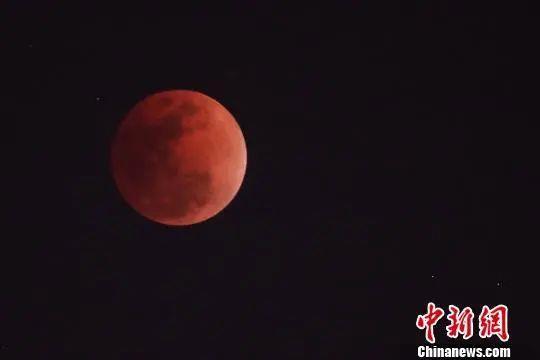 圖說(shuō):超級(jí)“藍(lán)血”月全食。中新社記者 泱波/攝