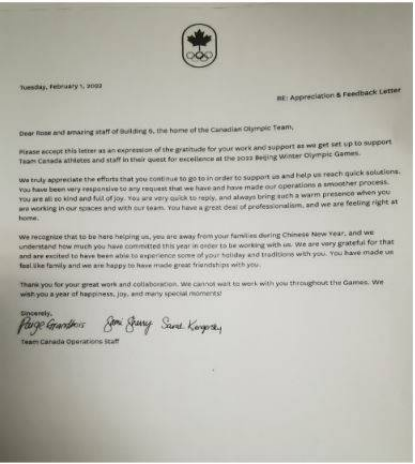 加拿大奧運(yùn)團(tuán)隊(duì)寫(xiě)給中國(guó)冬奧工作團(tuán)隊(duì)的感謝信。(圖片來(lái)源:中國(guó)日?qǐng)?bào)網(wǎng))